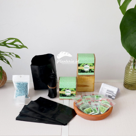 Terdiri dari pot tanaman, media tanam, benih tanaman, vitamin tanaman, dan petunjuk cara menaman