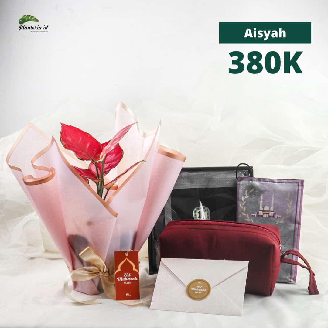Terdiri dari Souvenir living with plant serta alat solat lengkap (sarung, mukena, dan sajadah)